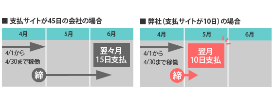しかも10日が土・日・祝日の場合は前営業日にお支払いとなるため、10日よりもっと速くなることもあります。就業の翌月からすぐに報酬をもらえるため、大変喜ばれます。